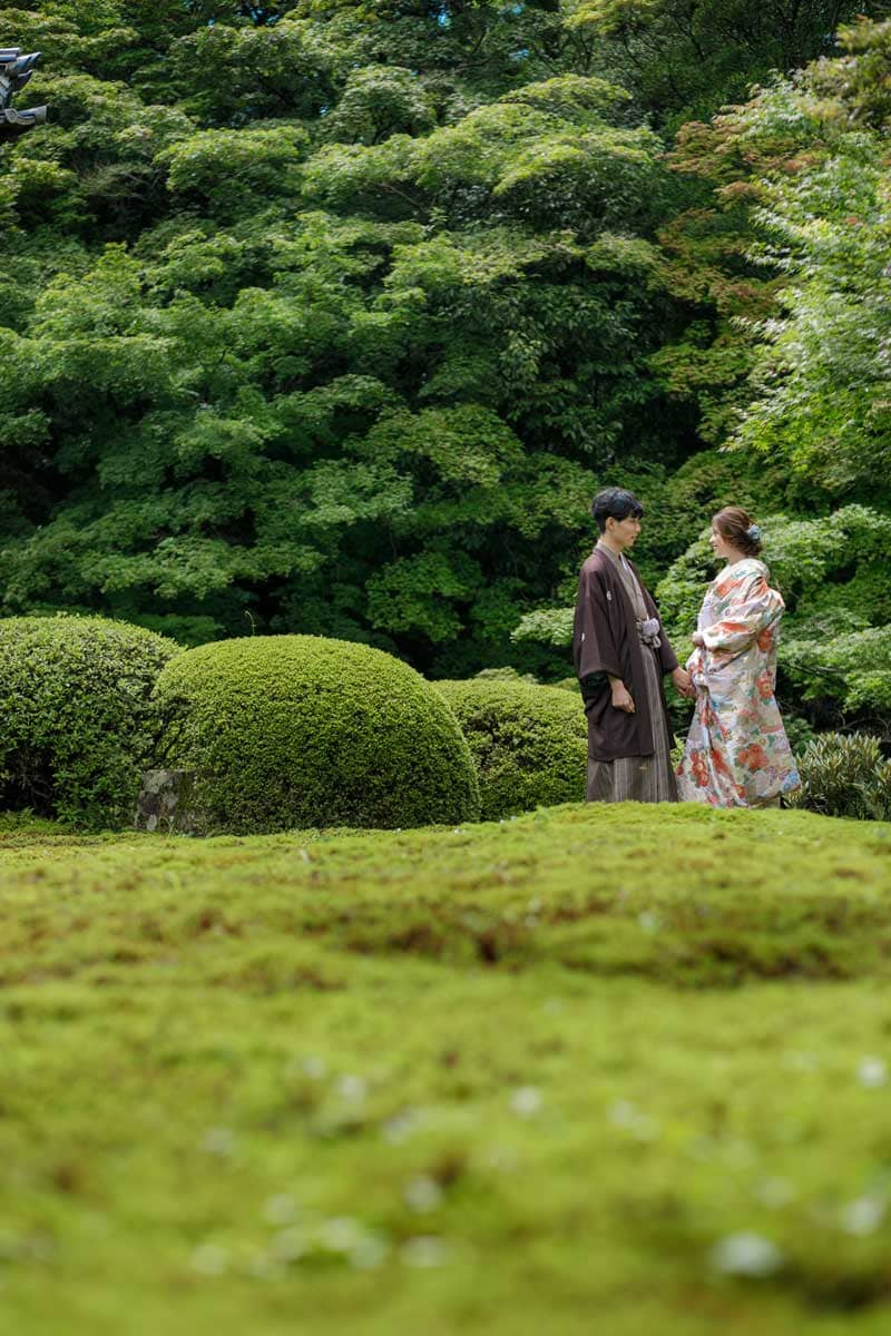 テラスレストラン フェリエ にてご夕食当日6:15〜 新婦様 美容室にてお仕度 7:00〜 新郎様 美容室にてお仕度 8:00 ホテル出発 8:30~ 撮影開始(撮影時間は目安2時間30分) 8:30 通天橋(45分) 9:15 庭園(30分) 9:45 開山堂(15分) 10:00 人力車(1時間) ※ 方丈追加の場合30分追加 11:00 東福寺出発 11:30 ホテル帰館