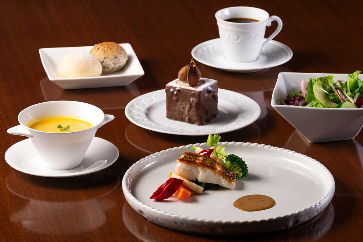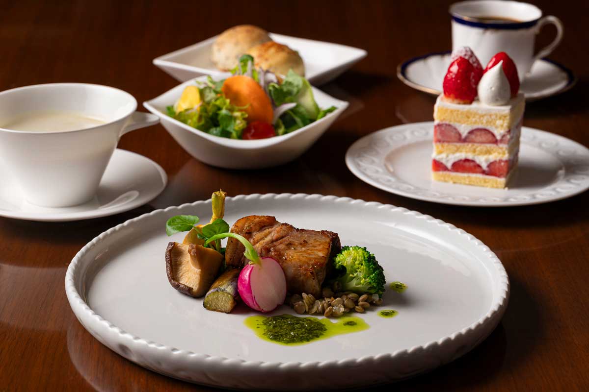 スープ、サラダ、メインディッシュの後は、パティシエ自慢のケーキをお楽しみいただけるお得なランチセットです。