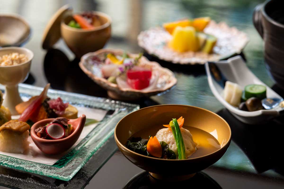 旬の味覚をふんだんに、お料理の随所で京都らしさを感じる料理長おすすめのディナー懐石。