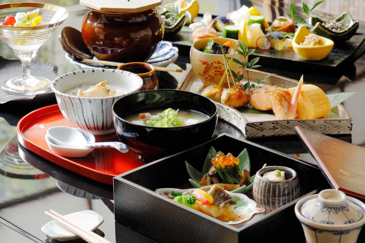 朝食付き宿泊プランにてお泊りのお客様は、洋食(テラスレストランフェリエ)または「あさげ・朝粥」をお選びいただけます。