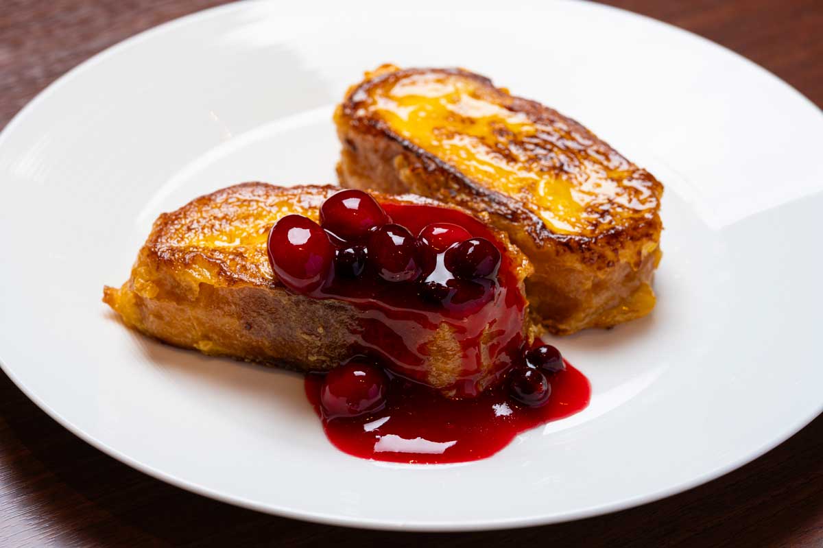 卵・牛乳・蜂蜜・砂糖に丸一日浸したバゲットを、15分ほどかけじっくりと焼き上げることでふんわりとした仕上がりに。焼き立てをどうぞ。