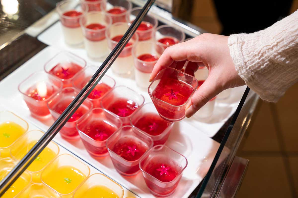 ブッフェ台に並ぶ色とりどりのお料理は、サラダや温かいお料理、デザートまで種類豊富。その日の気分でメニューを組み立てられるのも嬉しいポイントです。
