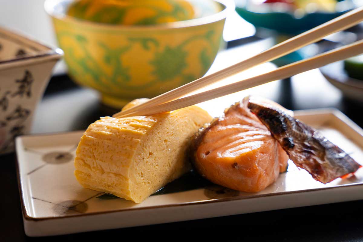 ふんわり焼き上げた出汁巻きは、玉子の甘みたっぷり。大きな半身のフィレに塩を振り一晩寝かせた鮭には、絶妙な塩梅の塩味とうまみが凝縮されています。