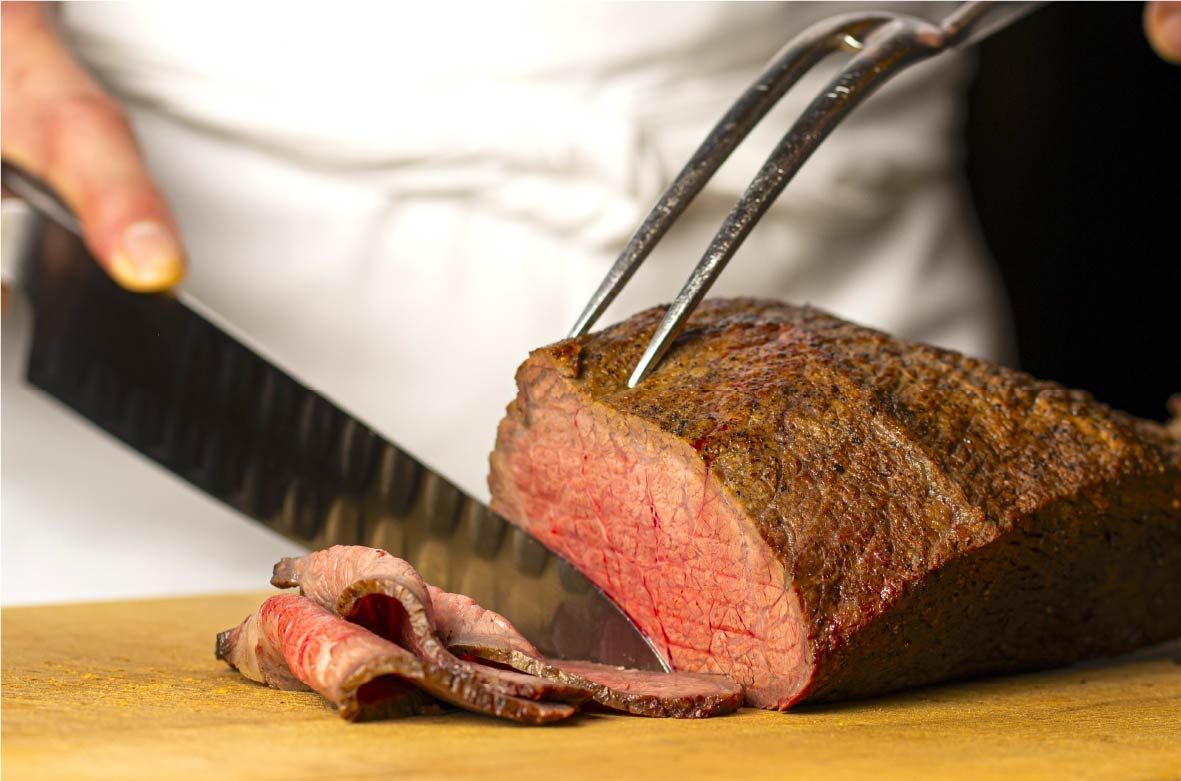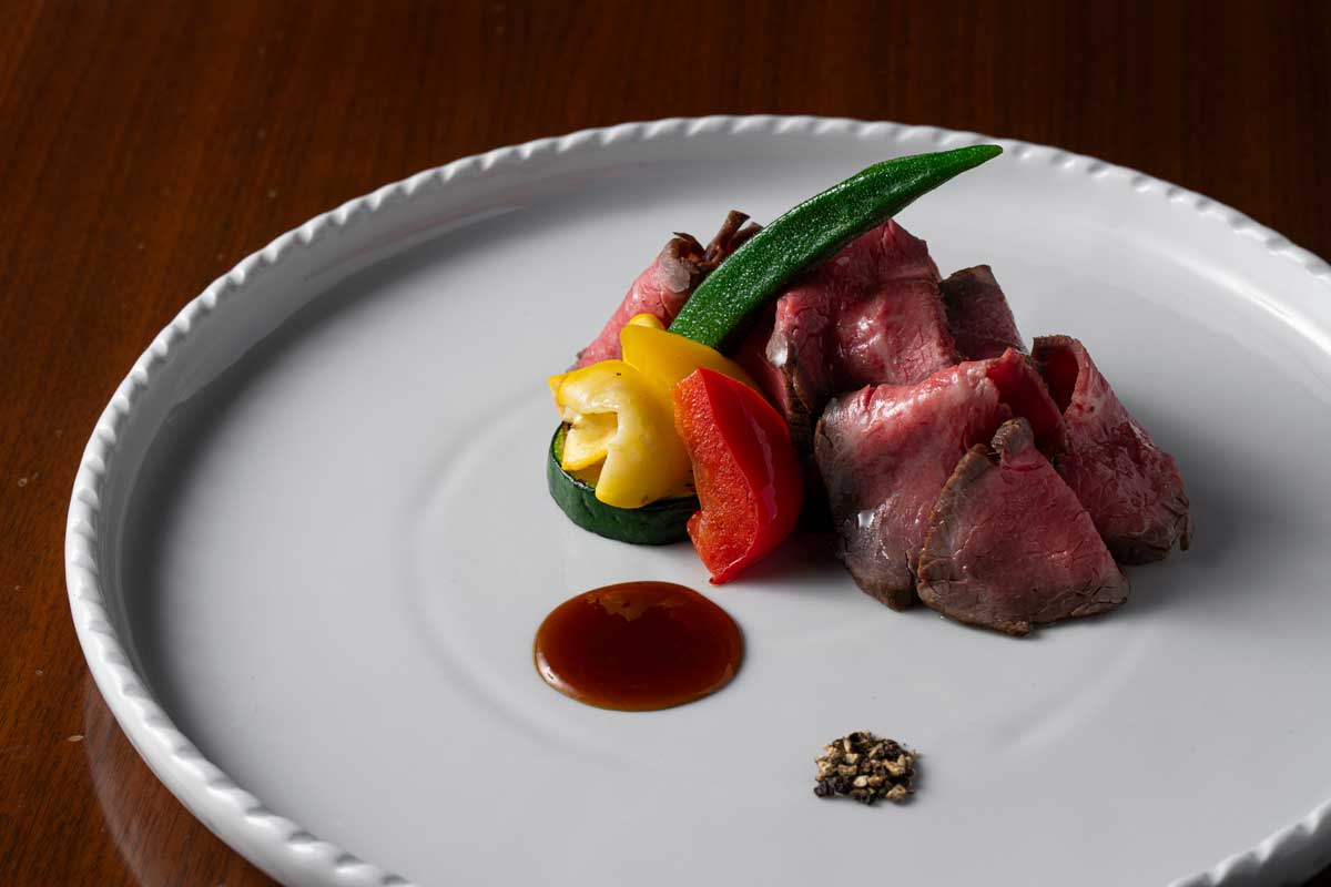 火入れした柔らかなローストビーフ