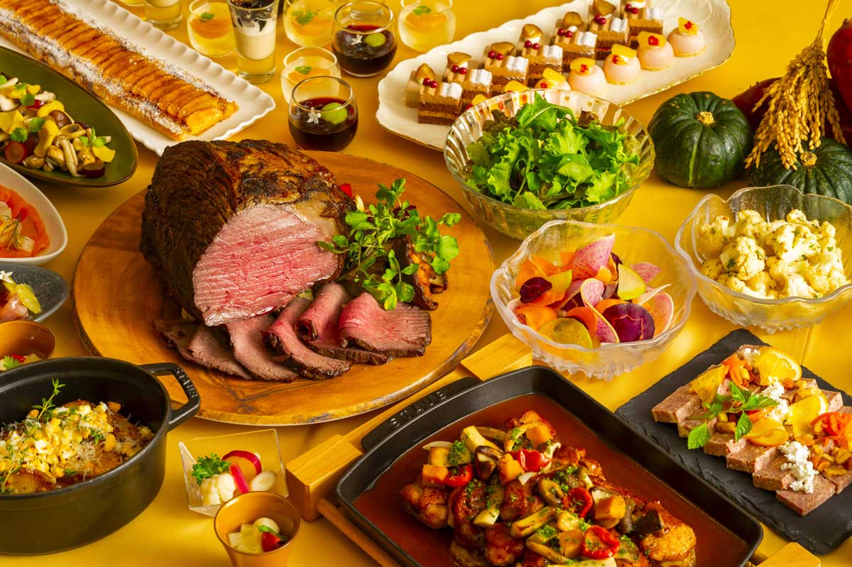 ランチブッフェブッフェコーナーには、茸や秋刀魚、薩摩芋など、秋の味覚をふんだんに使用したお料理が勢揃い!ローストビーフは、平日は選べるメインディッシュに、土日祝はブッフェラインに登場。