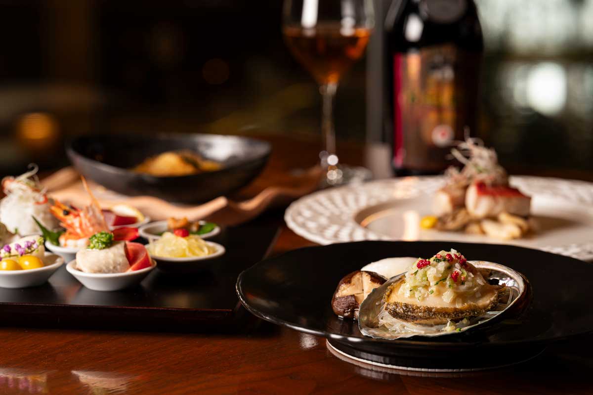 食感の良い京野菜とともに柚子が香るふっくらと蒸した鮑に、腐乳で炒めた蕪とシャキッとした壬生菜が深いコクを与える一品。味わいと食感のコントラストを楽しんで。