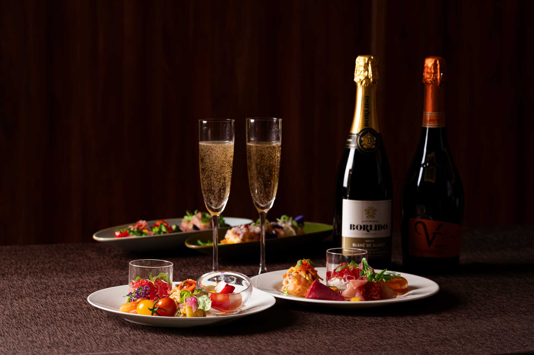 心もお腹も満たされるディナーをカラフルなオードブルやお酒が進むタパスは、お好きなものをお好きなだけ召し上がれ。地元の野菜や地鶏、地酒の酒粕を使ったメインディッシュにも乞うご期待。
