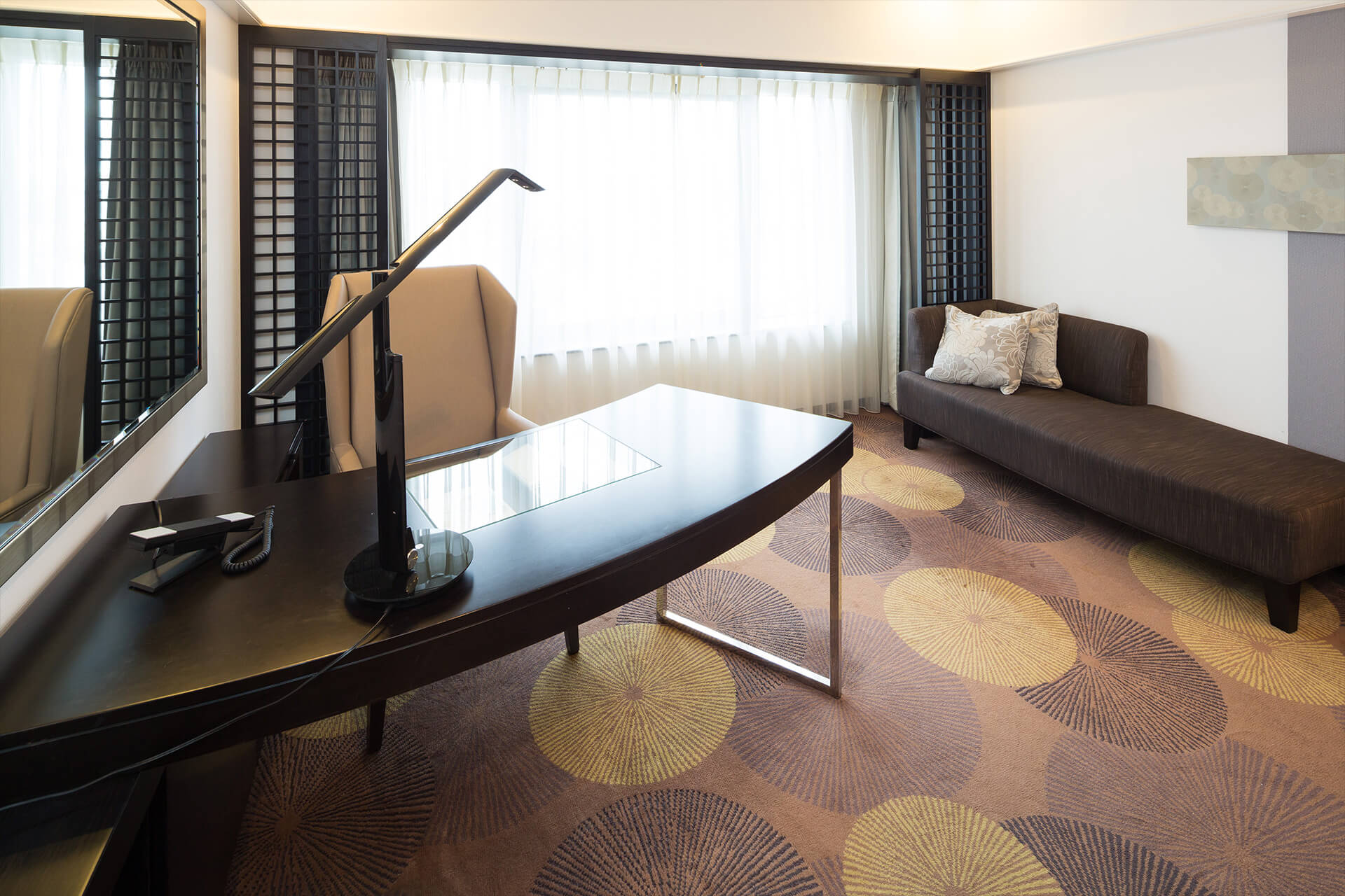 広々としたデスクが設置されているので、ビジネスでのご利用やお一人様でのご利用にも適したお部屋です。 -